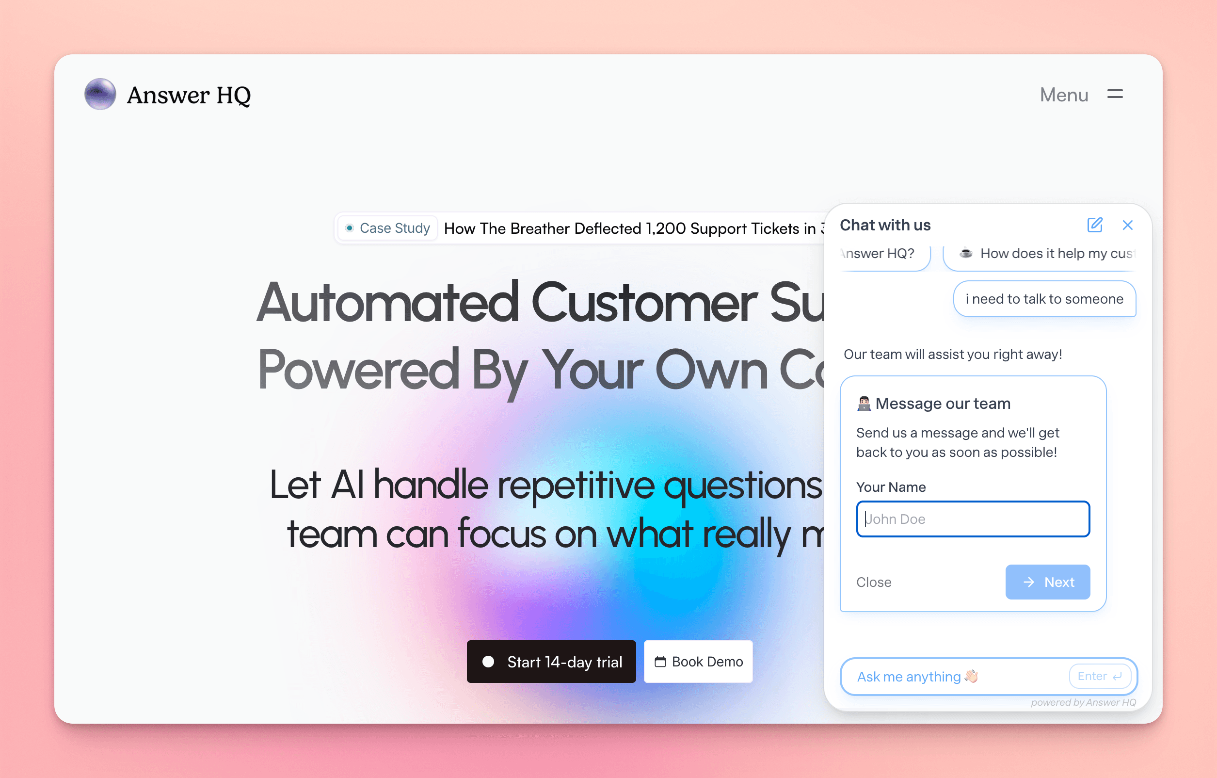 The Breather Deflected 1,200+ Support Tickets in 30 Days With Answer HQ - Here’s How
