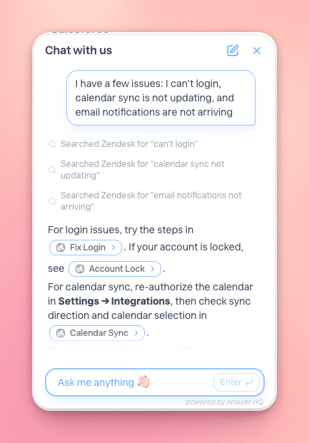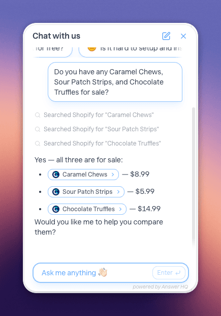 I'd love to hear what you think. Reach out at hello@answerhq.co or chat with us in the widget (yes, it's powered by Answer HQ).